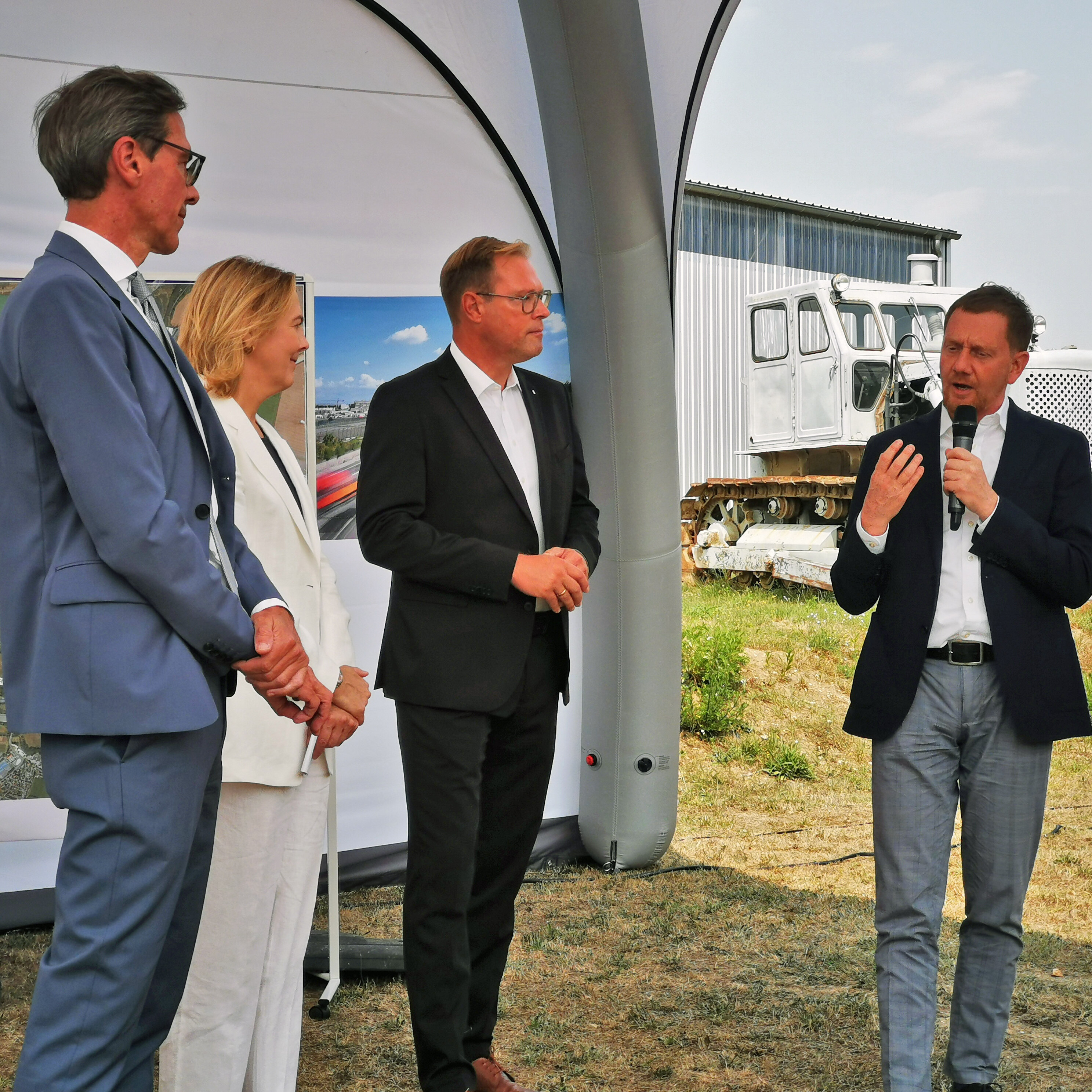 Am 17.10.2022 wurde durch die Vertreter des zuständigen Bundesministeriums für Digitales und Verkehr, der Autobahn GmbH des Bundes und der DEGES GmbH der Baubeginn zum Ersatzneubau der Muldebrücke im Zuge der BAB A 14 bei Grimma im Rahmen eines angemessenen Festaktes feierlich eingeläutet.
