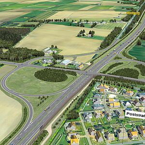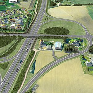 Der weit fortgeschrittene Bearbeitungsstand wurde anhand einer Vielzahl von Planunterlagen mit detaillierten Informationen zur Trassierung, der LBP-Maßnahmenplanung, der aktiven Schallschutzmaßnahmen und dem erforderlichen Grunderwerb präsentiert. Neben den vielfältig dokumentierten Informationen in Vorbereitung auf das Planfeststellungsverfahren, stellte der Landkreis Cloppenburg den BesucherInnen auch eine gut verständliche sowie eindrucksvolle 3D-Visualisierung der geplanten Ausbautrasse der E 233 vor.