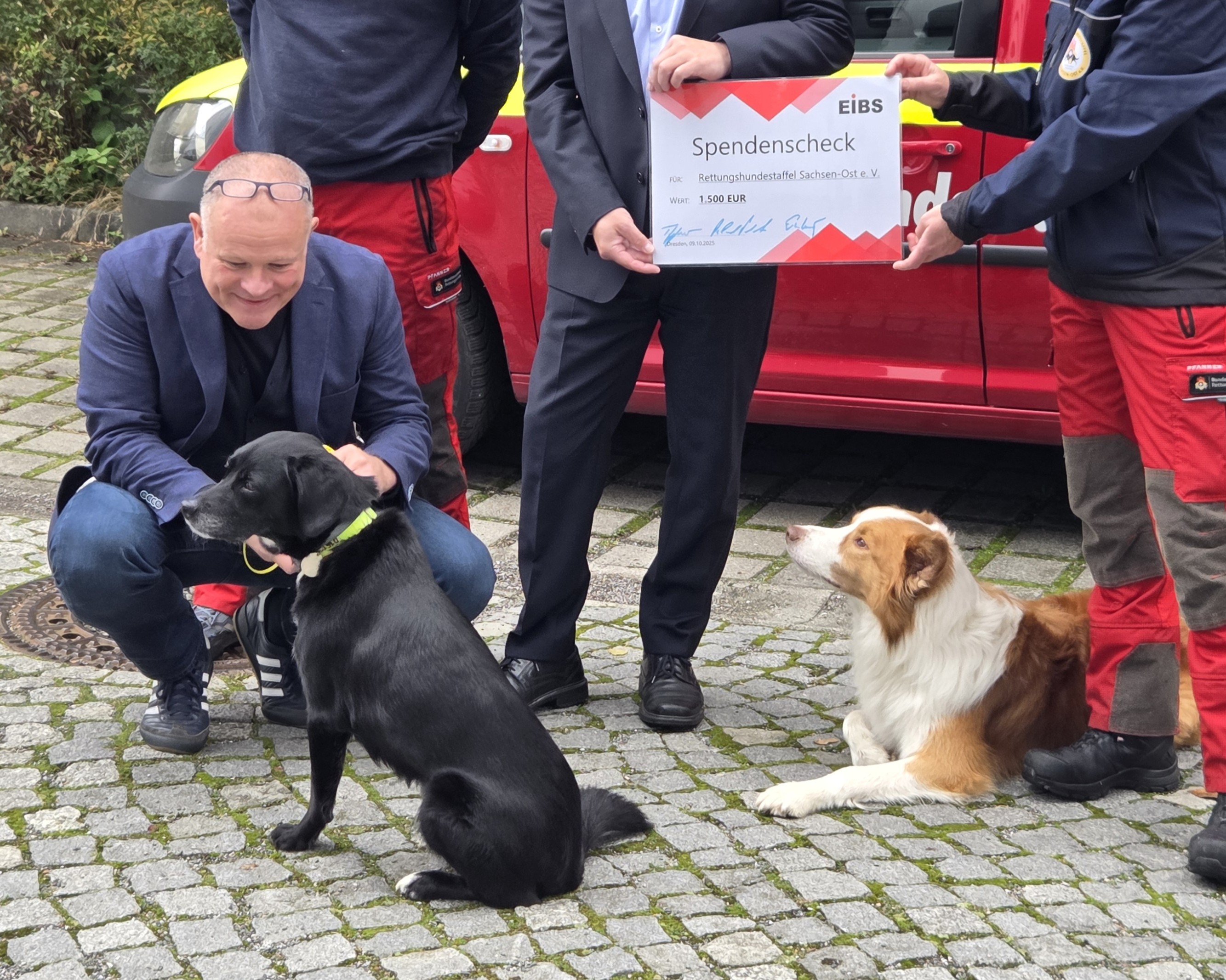 Auch wenn unsere Branche durch begrenzte Margen und entsprechend zurückhaltende Gewinnaussichten geprägt ist, sehen wir es als unsere feste Verpflichtung an, gesellschaftliche Verantwortung zu übernehmen – insbesondere dort, wo Menschen sich mit Herz und Hingabe für das Gemeinwohl einsetzen. In diesem Jahr geht unser Spendenscheck an den Verein „Ehrenamtliche Rettungshundestaffel Sachsen-Ost e.V.“